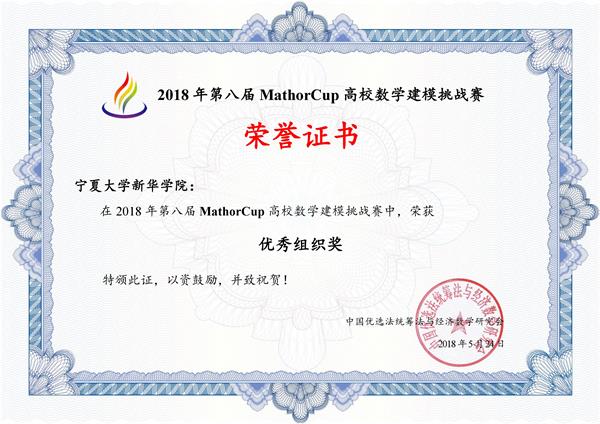 【信息与计算机科学系 吴军/文图】5月25日,2018年第八届MathorCup大学生数学建模挑战赛比赛成绩揭晓,学院李国平老师指导的学生兰茜珍、谢军和李佳,张炳彩老师指导的学生万晓天、尚彬和张嘉楠,吴军老师指导的学生车龙、王文涛和张恒3支参赛队伍获得全国三等奖;学院被评为优秀组织单位。