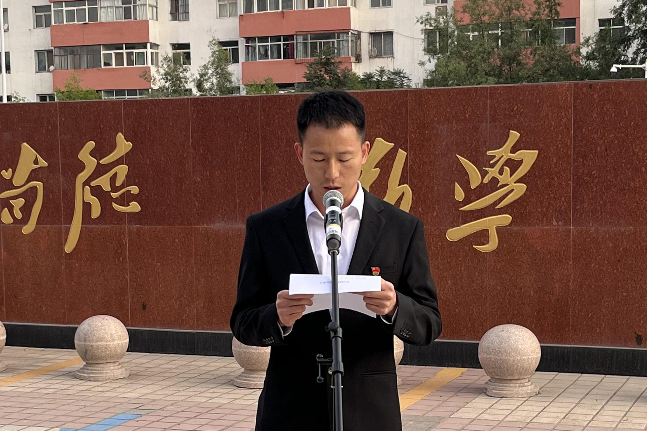 【信息与计算机科学系 李月奇/文 杨兄兄/图】为进一步深化青年学生思想政治引领,引导广大青年学生厚植爱党、爱国、爱社会主义的情感,9月18日,信息与计算机科学系在中心区教学楼前举行“勿忘国耻 立志成才——纪念‘九一八’事变92周年”升国旗仪式。信息与计算机科学系党总支书记冯欣、教办主任高振怀、辅导员、学生党员、学生干部及2023级全体学生参加了升国旗仪式。升国旗仪式由信息与计算机科学系学办主任李月奇主持。